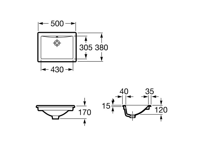 DIVERTA умывальник встраиваемый 50*38см, без отверстия под смеситель, с переливом