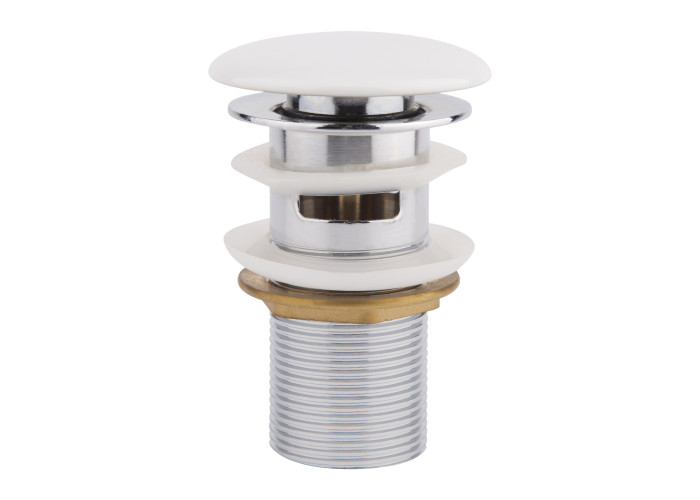 Донный клапан Qtap WHI F008-1 выполнен из латунной фурнитуры хромированного цвета и белой керамической крышки с приятным блеском, которая будет отлично смотрится на дне раковины такого же покрытия. Изделие позволит перекрыть сливное отверстие в случае необходимости и использовать раковину как таз, а наличие перелива убережет вас от потопа, если вы ненадолго отвлеклись во время набирания воды. Клапан быстро монтируется и просто управляется. Соединение универсальное со стандартным шагом резьбы.