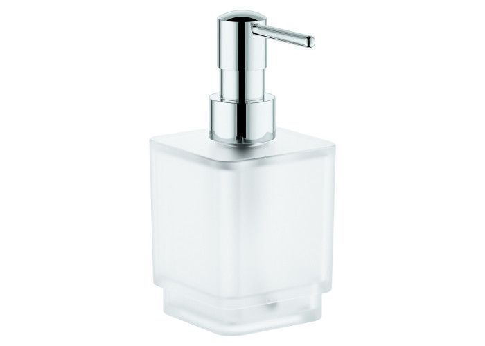Дозатор для рідкого мила Grohe Selection Cube 40805000 підходить для тримача SelectionCube (40865000). Він легко встановлюється завдяки технології GROHE QuickFix на стіні надійним прихованим кріпленням. Хромоване покриття захищає від корозії і бруду, що зберігає блиск надовго. Дизайн дозатора підходить за дизайном до будь-яких аксесуарів, прекрасно впишеться в ванну в стилі мінімалізм і, завдяки своїм розмірам, може кріпиться в будь-якому зручному та доступному місці, не займаючи місце на раковині.