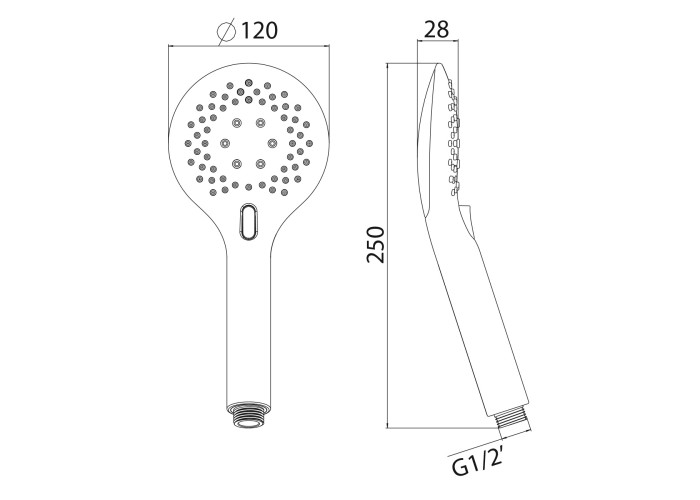 Душ ручной 120 мм, 3 режима (Rain, Massage, Fog), блистер, хром, пластик.