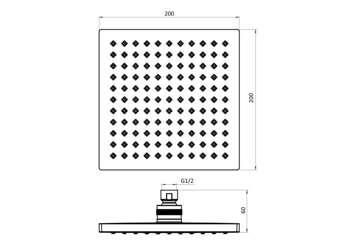 Душ верхний, диаметр 200 ммЛейка, размер: 200х200 мм, 1 функция: ливень, поверхность: хром