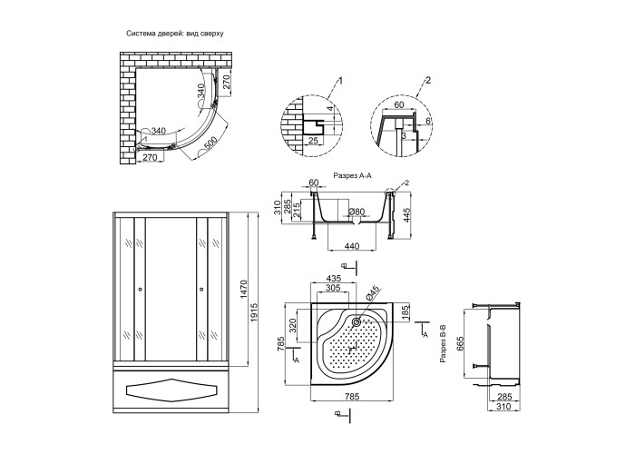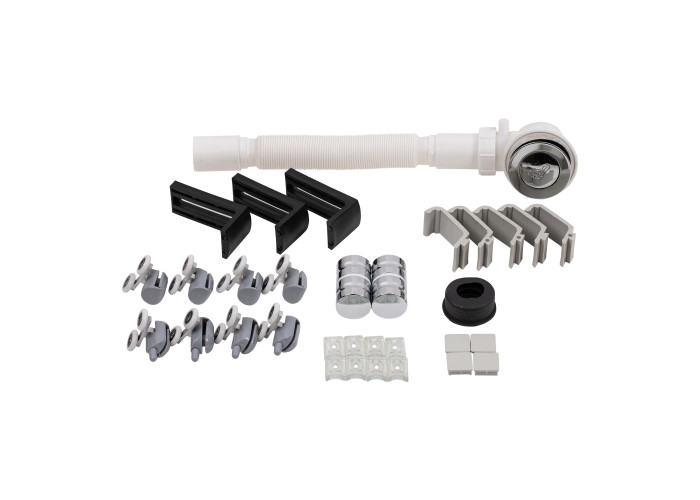 Піддон, сифон, профіль, подвійні ролики, кріплення, глухе скло, скляні двері, ручки, з‘єднуючий елемент.