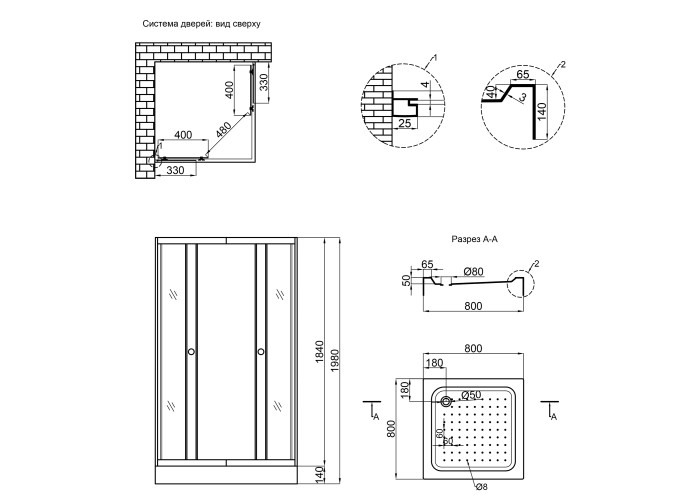 Поддон, сифон, дверцы, ручки, ролики, профиль, крепежи, ножки.