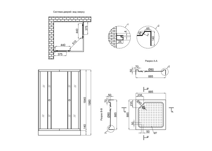Поддон, сифон, дверцы, ручки, ролики, профиль, крепежи, ножки.