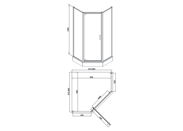 Боковые профили, набор уплотнителей, ручка, заглушка, комплект крепежей, глухие стекла, стеклянная дверь в профиле с петлями, расширительные профили.