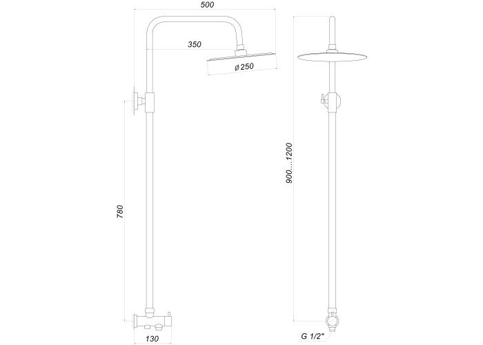 - верхний душ - круглая лейка ø25 см, стойка ( 85-125 см )