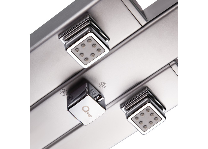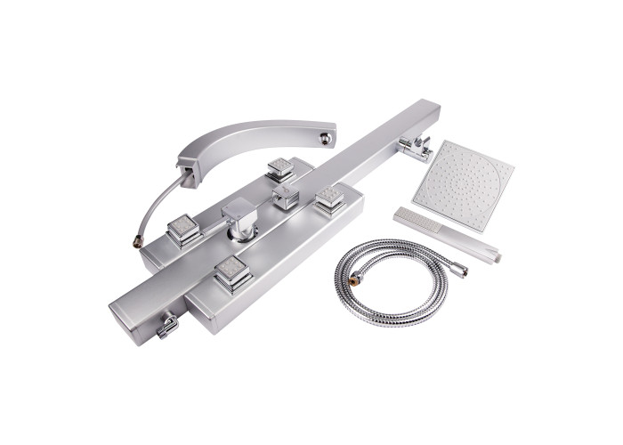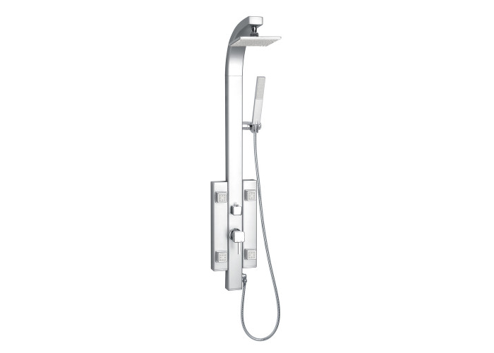 Душова панель, змішувач, душові форсунки: 4шт, лійка для верхнього душу, кронштейн для ручного душу, лійка для ручного душу, душовий шланг, кріпильні деталі.