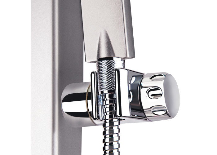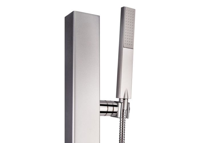 Душова панель Qtap SIL 1102 забезпечить максимально комфортний прийом душу. На панелі розміщені душові форсунки та змішувач, а також верхній душ і ручний душ. Тривалий термін служби забезпечують матеріали, з яких виготовлено виріб: міцний пластик та зносостійка, довговічна латунь, що не піддається впливу іржі.