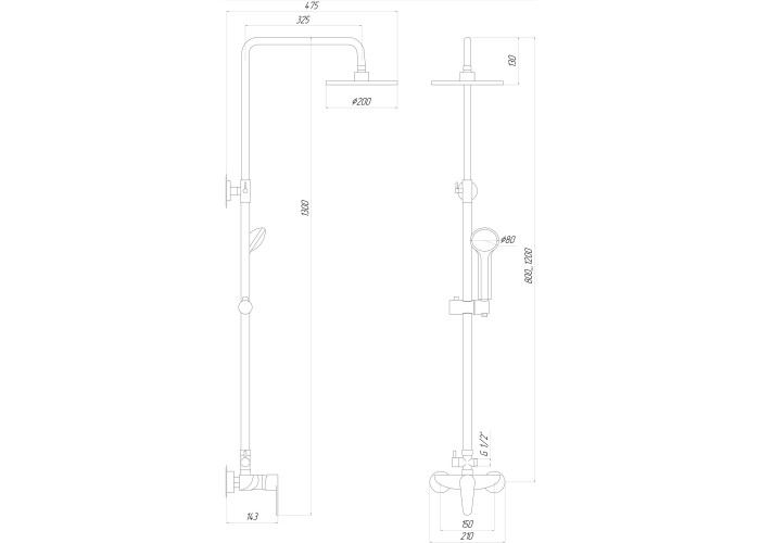 - верхний душ - круглая лейка тропик ø20 см, стойка (80-120 см)