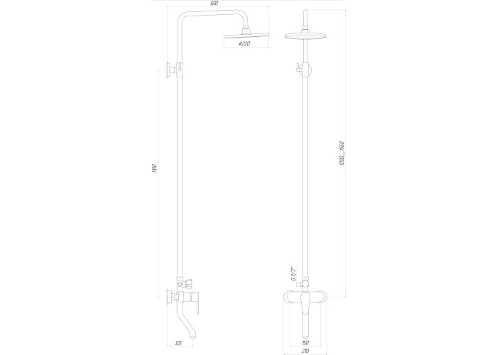 - верхній душ - кругла лійка ø 22 см, стійка (100-150 см)