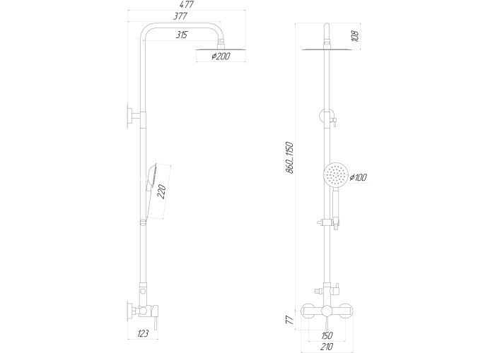 Габарити (ШхВхГ): 210 х 1227 х 477 мм