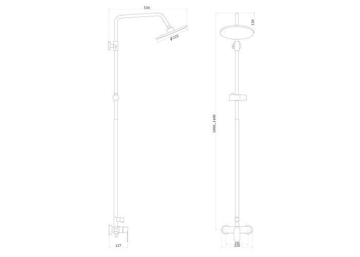 - верхній душ - кругла лійка ø22.5 см, стійка (100-140 см)