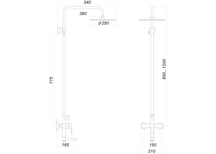 - верхній душ - кругла лійка ø 25 см, стійка (85-125 см)