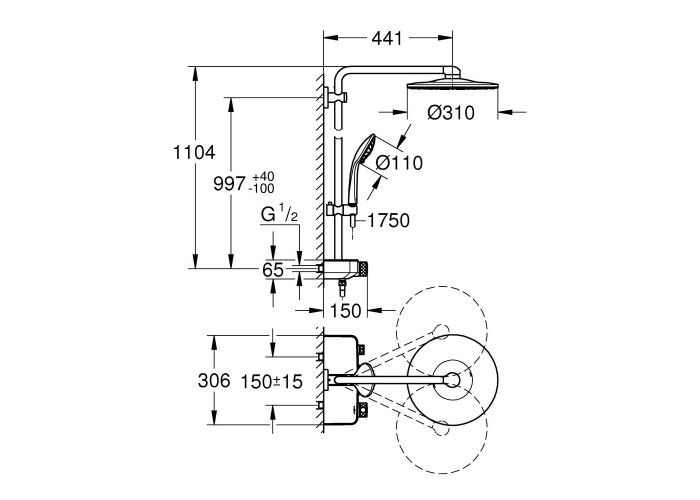 GROHE DreamSpray - оптимальное распределение воды по каждой душевой форсунке. GROHE StarLight - хромированное покрытие. GROHE CoolTouch - предотвращение ожогов о поверхность изделий. GROHE TurboStat - обеспечение и поддержание температуры воды. GROHE EcoJoy - водосберегающая технология. GROHE SafeStop - ограничение температуры воды до 38 °C. GROHE SmartControl - включение-выключение и регулировка напора. GROHE SpeedClean - предотвращение образования известковых отложений. GROHE Twistfree.