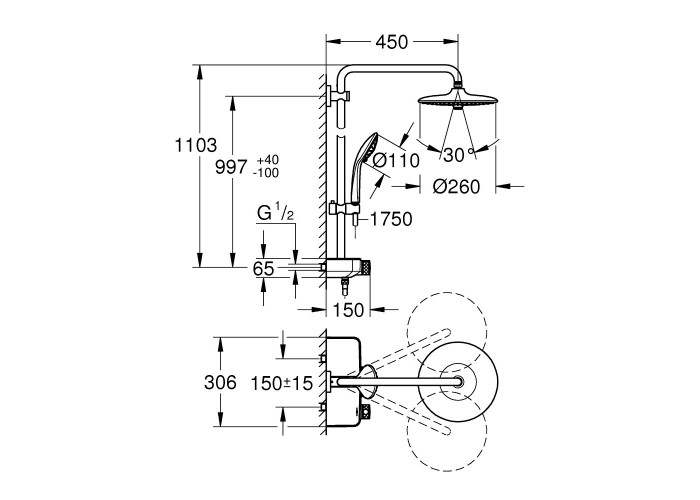 GROHE DreamSpray - оптимальное распределение воды по каждой душевой форсунке. GROHE StarLight - хромированное покрытие. GROHE CoolTouch - предотвращение ожогов о поверхность изделий. GROHE TurboStat - обеспечение и поддержание температуры воды. GROHE EcoJoy - водосберегающая технология. GROHE SafeStop - ограничение температуры воды до 38 °C. GROHE SmartControl - включение-выключение и регулировка напора. GROHE QuickFix - удобный монтаж. GROHE SpeedClean.