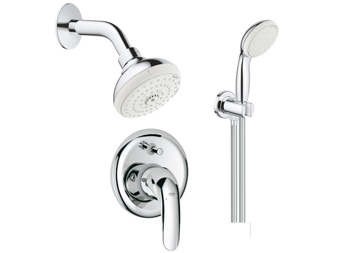 Душова система Grohe Euroeco 26000005 складається з верхнього та ручного душу, а також зручного змішувача. Прихований спосіб монтажу дозволяє збільшити варіанти розташування елементів системи, а високоякісна латунь і зносостійке хромоване покриття продовжують термін експлуатації виробу.