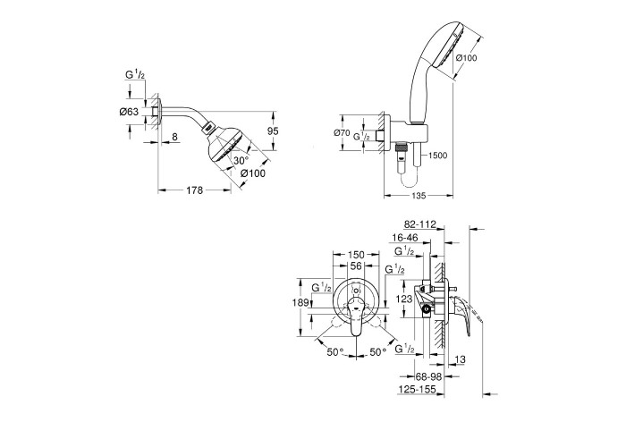 GROHE DreamSpray - оптимальний розподіл води по кожній душовій форсунці. GROHE EcoJoy - водозберігаюча технологія. GROHE StarLight - хромоване покриття. GROHE SpeedClean - запобігання утворенню вапняних відкладень. GROHE SilkMove -плавність ходу важеля.