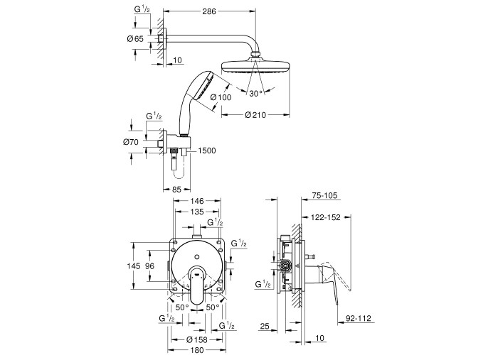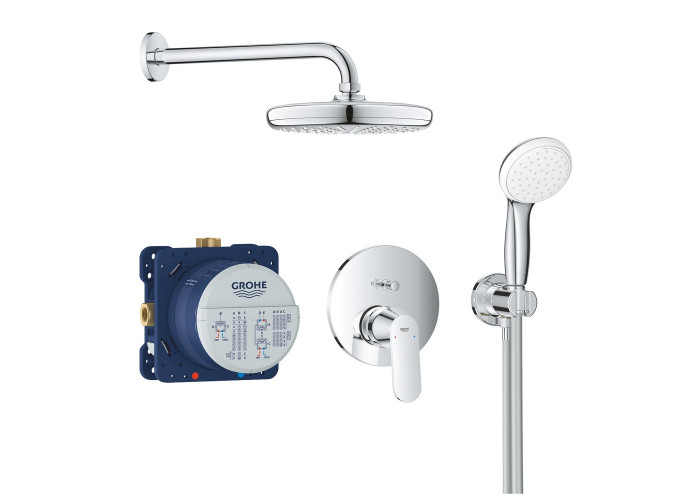 GROHE DreamSpray - оптимальное распределение воды по каждой душевой форсунке. GROHE StarLight - хромированное покрытие. GROHE EcoJoy - водосберегающая технология. GROHE QuickFix - удобный монтаж. GROHE SpeedClean - предотвращение образования известковых отложений. GROHE SilkMove - плавность хода рычага. GROHE Twistfree - предотвращение скручивания душевого шланга.