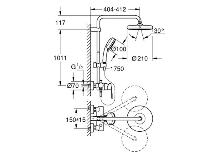 GROHE DreamSpray - оптимальное распределение воды по каждой душевой форсунке. GROHE StarLight - хромированное покрытие. GROHE SpeedClean - предотвращение образования известковых отложений. GROHE SilkMove - плавность хода рычага. GROHE Twistfree - предотвращение скручивания душевого шланга.