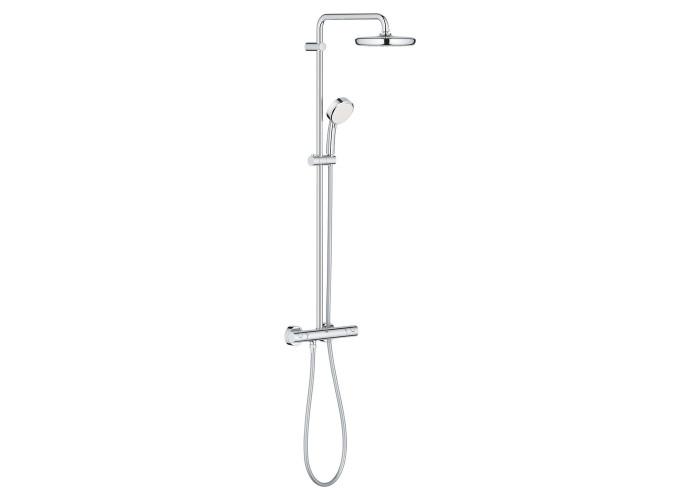 Душевая система Grohe Tempesta Cosmopolitan 27922001 обладает оптимальным распределением воды и обеспечивает максимальное удобство гигиенических процедур. Она состоит из душевой стойки с верхним и ручным душем, а также удобного смесителя. Долговечность и износостойкость гарантируется благодаря качественному хромированному покрытию. Термостатический смеситель обеспечит автоматический контроль смешивания воды.