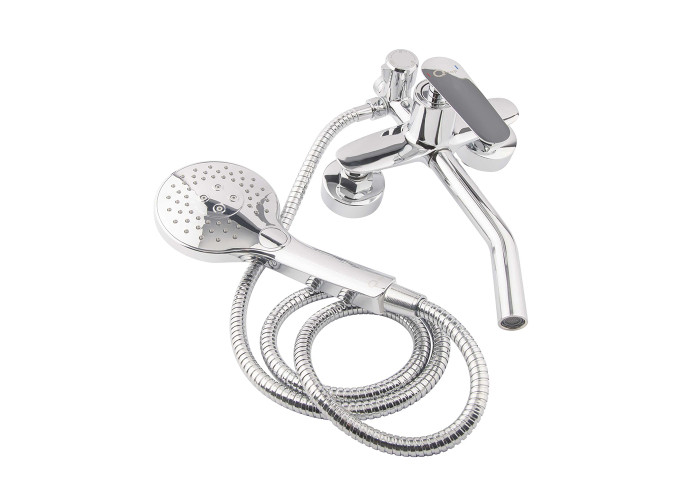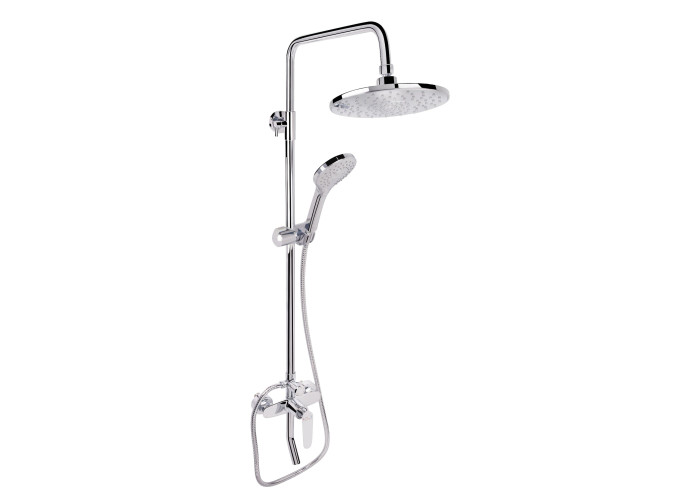 Змішувач, кронштейн для верхнього душу, лійка для верхнього душу, кронштейн для ручного душу, лійка для ручного душу, душовий шланг, душова стійка, кріпильні деталі.