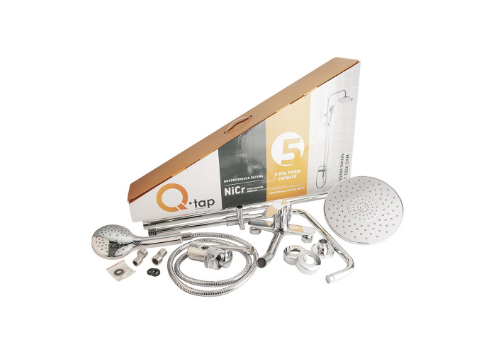 Душова система Qtap CRM 1006 забезпечить максимально комфортний прийом душу. Вона складається з телескопічної душової стійки з фіксованим верхнім і гнучким ручним душем та змішувача. Тривалий термін служби забезпечують довговічна, зносостійка латунь, яка не підпадає під вплив іржі та міцний пластик, з яких виготовлено виріб.