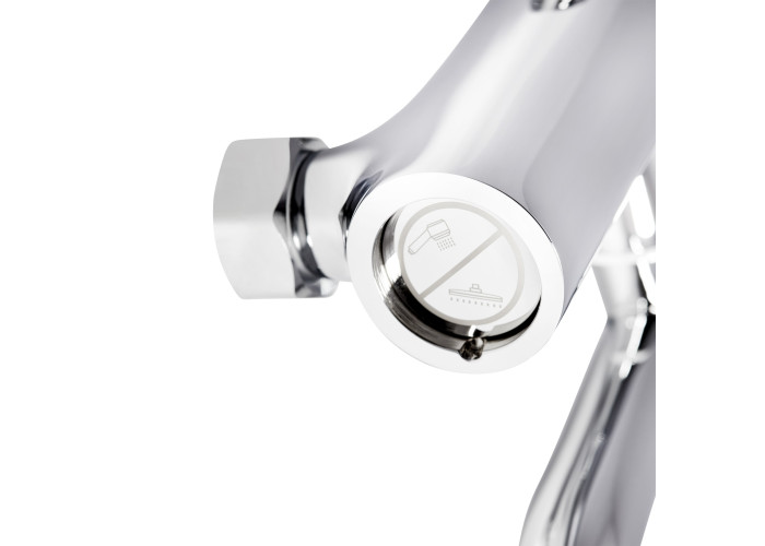 Дополнительные характеристики Переключение в душевой режим осуществляется путем поворота излива на 90 градусов, переключение между верхним и нижним душем - при помощи кнопки.