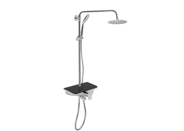 Душевая система Qtap Sloup 51106VKOB - современное и практическое решение в одном изделии. Она изготовлена из качественной латуни и прочного пластика, которые не подвержены коррозии. Система выполнена с глянцевой хромированной поверхностью, укомплектована стильным смесителем-полкой с изливом и кнопкой переключения между душами, душевой стойкой, а так же двумя лейками для ручного и верхнего душа. Регулирование напора и температуры воды осуществляется при помощи удобного рычага.