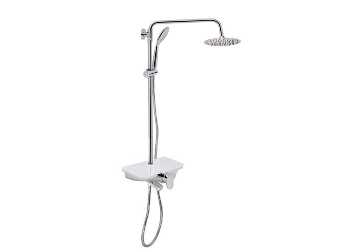 Душевая система Qtap Sloup 51106VKOW - современное и практическое решение в одном изделии. Она изготовлена из качественной латуни и прочного пластика, которые не подвержены коррозии. Система выполнена с глянцевой хромированной поверхностью, укомплектована стильным смесителем-полкой с изливом и кнопкой переключения между душами, душевой стойкой, а так же двумя лейками для ручного и верхнего душа. Регулирование напора и температуры воды осуществляется при помощи удобного рычага.