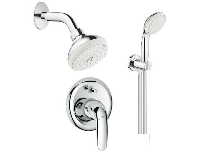 Душевая система скрытого монтажа Grohe Euroeco New 26000005 32747000 + 26088001 + 26406001. В комплекте: смеситель для душа 32747000, верхний душ 3 режима 26088001, душевой набор 2 режима 26406001.