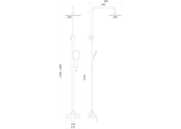 Вид монтажу душової системи: Настінний, на 2 вихода