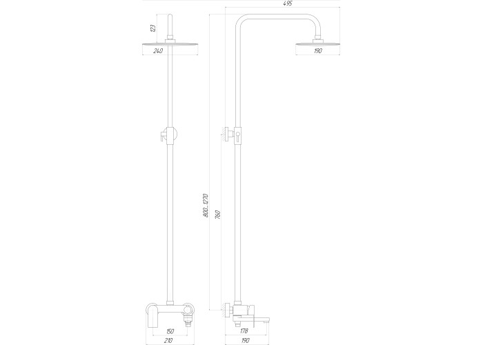 Вид монтажа душевой системы: Настенный, на 3 выхода воды