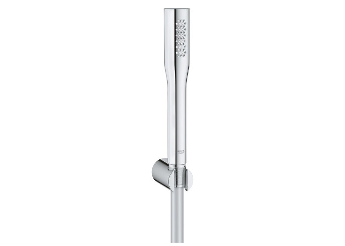 Душевой гарнитур Grohe Euphoria Cosmopolitan Stick 27369000 - функциональный, удобный и надежный душевой атрибут. Он состоит из кронштейна, стильной тонкой лейки для ручного душа и шланга. Удобная лейка, шланг с системой предотвращения скручивания и качественное хромированное покрытие являются неоспоримыми преимуществами данного изделия.