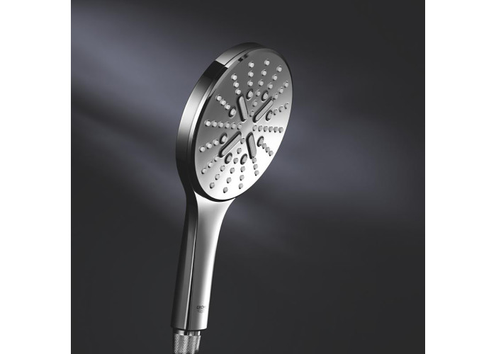 GROHE Twistfree - запобігання скручування душового шланга. GROHE SpeedClean - запобігання утворенню вапняних відкладень. GROHE TileFix - регулювання глибини кронштейнів кріплення для невертикальних стін. GROHE QuickFix - економія до 40% витрат часу на монтаж. GROHE DripStop - не протікає ручний душ після припинення подачі води. GROHE StarLight - хромоване покриття. GROHE Inner WaterGuide - запобігання нагріву поверхні лійки.
