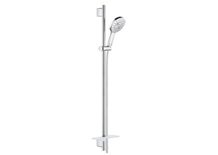 Душовий гарнітур Grohe Rainshower Smartactive 130 26578000 - функціональний, зручний і надійний душовою атрибут. Він складається з штанги, що ковзає по стійці, кронштейна, лійки для ручного душу з 3 режимами перемикання, душового шланга і полички. Якісне хромоване покриття додає привабливий зовнішній вигляд і продовжить експлуатаційний термін виробу.