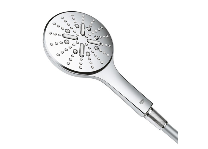 GROHE Twistfree - запобігання скручування душового шланга. GROHE SpeedClean - запобігання утворенню вапняних відкладень. GROHE TileFix - регулювання глибини кронштейнів кріплення для невертикальних стін. GROHE QuickFix - економія до 40% витрат часу на монтаж. GROHE DripStop - не протікає ручний душ після припинення подачі води. GROHE StarLight - хромоване покриття. GROHE Inner WaterGuide - запобігання нагріву поверхні лійки.