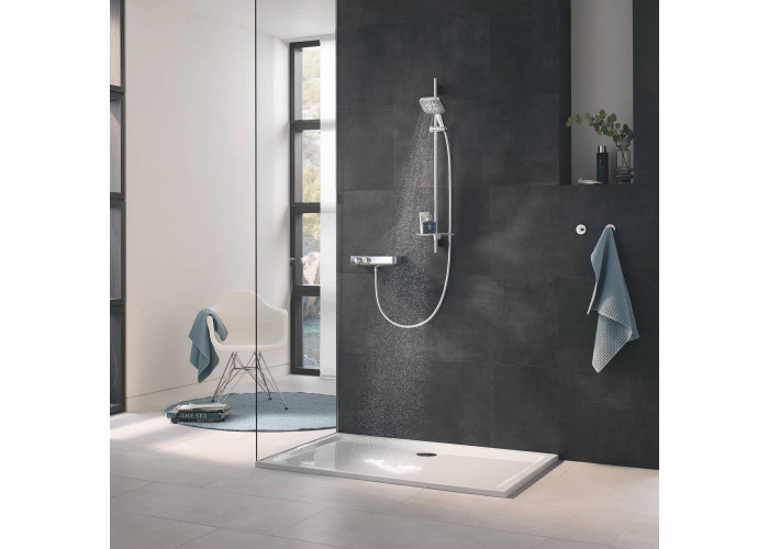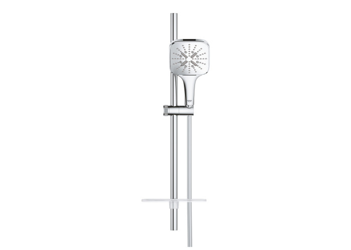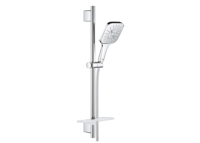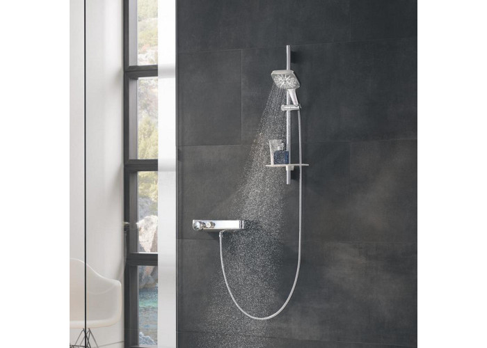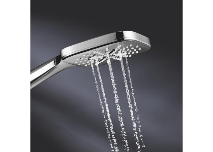 Inner WaterGuide - запобігання нагріву поверхні лійки. DreamSpray - оптимальний розподіл води по форсункам. Jet spray - пружний потік води. DripStop - не протікає ручний душ після припинення подачі води. SmartTip - вибір режиму струменя одним дотиком пальця. SpeedClean - запобігання утворенню вапняних відкладень. QuickFix - економія до 40% витрат часу на монтаж. StarLight - хромоване покриття. GROHE Massage spray - масажний режим води. RainStart - включення зі струменем Rain.