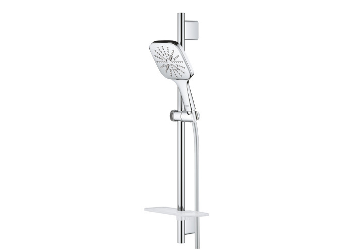 Лійка для ручного душу (26550), душова штанга, душовий шланг Silverflex (28388), рухомий кронштейн, полиця EasyReach.