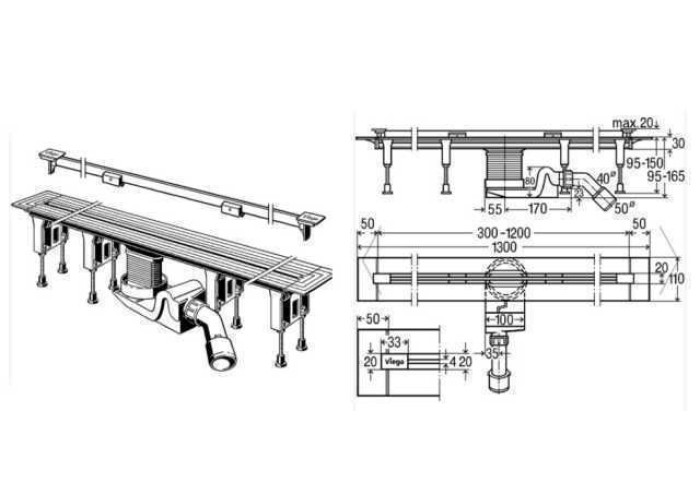 Розміри лотка VIEGA Advantix Vario 704353 (див. мал.)
