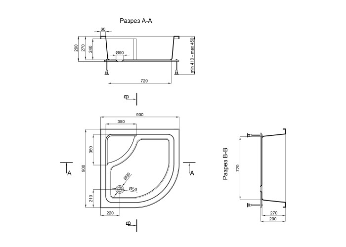 Вбудоване сидіння. Ніжки піддону регулюються по висоті.