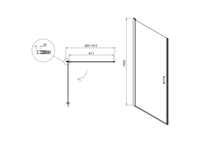 Дверь в нишу 90*195см распашная, хром, стекло прозрачное 6мм