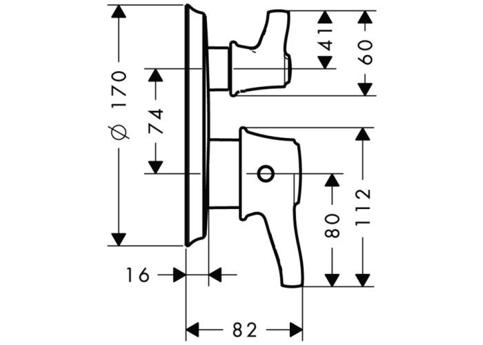 Термостат для душа с запорным/переключающим вентилем, встраиваемый в стену, хром.