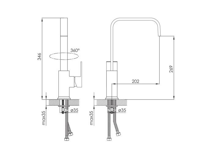 Elanta смеситель для кухни, хром, 35 мм, поворотный излив