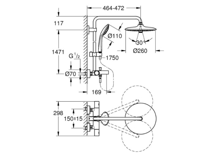 EUPHORIA System 260 душевая система настенного монтажа с термостатом для ванны