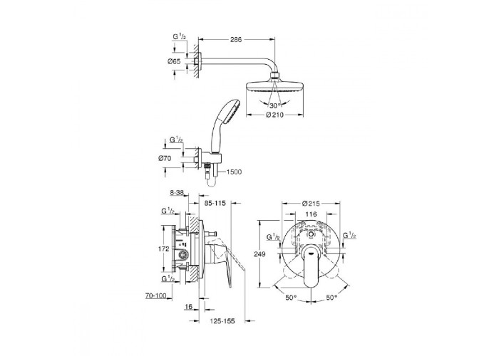 Минималистичный душевой набор GROHE Eurosmart Cosmopolitan Perfect добавит дизайнерский стиль и качество в любую ванную комнату. Набор включает встраиваемую часть однорычажного смесителя GROHE Rapido E и оснащен передовыми технологиями GROHE. Технология GROHE DreamSpray гарантирует, что поток воды из каждой душевой форсунки будет одинаковым, что отлично отражается на верхнем душе GROHE New Tempesta 210 мм и его обволакивающего режима струи Rain, а также на ручном душе GROHE New Tempesta 100 мм с двумя режимами струи - нежным Rain и восстанавливающим Jet. Силиконовые душевые форсунки легко очистить от грязи и известкового налета благодаря технологии SpeedClean. Силиконовое кольцо ShockProof убережет ручной душ от ущерба при падении. С картриджем GROHE SilkMove управление потоком и температурой воды осуществляется плавно и точно. Многослойное хромовое покрытие GROHE StarLight устойчиво к царапинам и долговечно. Внутренний водный канал WaterGuide предотвратит нагревание поверхности душа. Набор включает однорычажный смеситель GROHE Rapido E встраиваемого монтажа, душевой кронштейн Rainshower (286 мм) и душевой шланг Rotaflex (1500 мм).