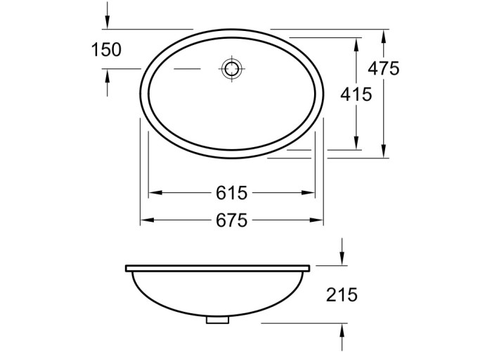Умывальник без отверстия под смеситель, с переливом, наружная сторона покрыта глазурью