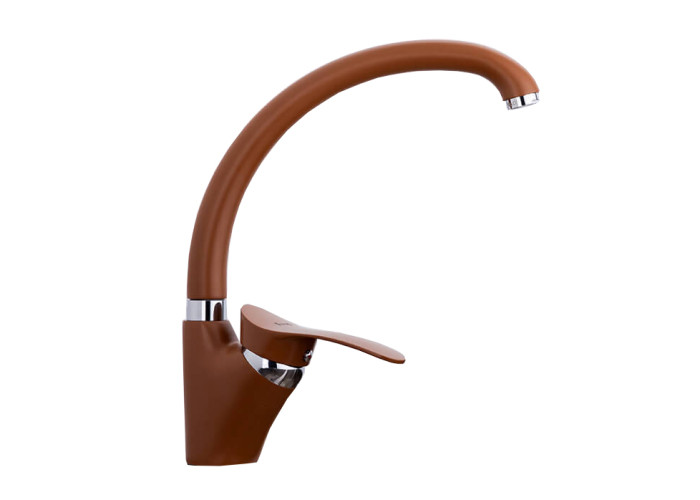 Картриджний змішувач для кухні FRAP F4101-14 (F41) з поворотним U-подібним гусаком з вбудованим аератором. Матеріал – силумін, покриття - коричневий емаль з хромованими елементами. Кріплення - гайка. Діаметр картриджа - 40 мм. В комплект поставки входить змішувач, гнучкі підведення, кріплення. Продукція Frap виготовлена відповідно до європейського стандарту CE і міжнародного стандарту ISO. Відмінною особливістю Frap можна назвати різноманітність варіантів дизайну. Італійські технології лиття роблять внутрішню і зовнішню поверхню змішувача ідеально гладенькою і покращують антикорозійні властивості виробу. Країна-виробник – Китай.