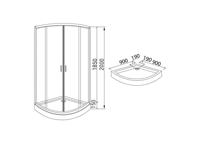 FIESTA душевая кабина 90*90*185 см (стекла+двери), цвет профиля хром, прозрачное стекло, двери раздвижные. Стекло каленое прозрачное толщиной 6мм.