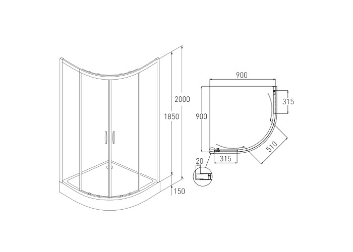 • Размеры (ДxШxВ) – 900x900x2000 мм