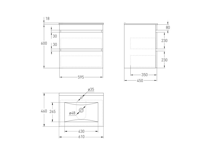 • Керамическая накладная раковина с переливом, 1 отверстие под смеситель